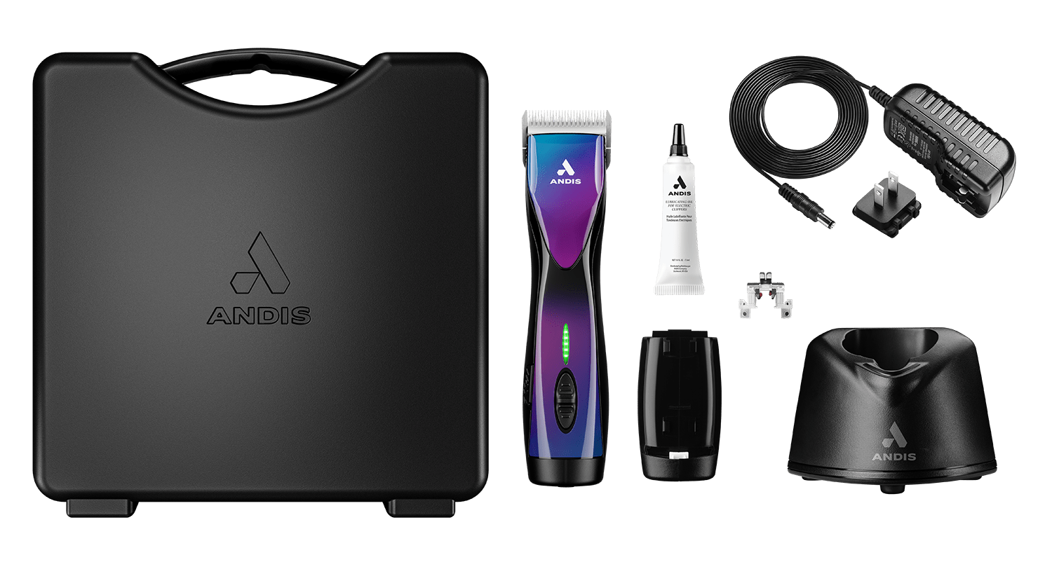 Transforming an animal’s coat can have a transformative effect on you. Add color and style to each unique evolution using the next-generation Andis Pulse ZR II Cordless Clipper. Create best-in-show styles for all coat types with its powerful five-speed rotary motor and rechargeable battery. This clipper delivers up to three hours of run time on a single charge and includes swappable batteries to keep you pushing your designs forward. The detachable blade system and wide compatibility make maintenance a breeze, while the #10 CeramicEdge blade runs cool and stays sharp. The unique Purple Galaxy design embodies the bold expression that marks each new generation of true creators.