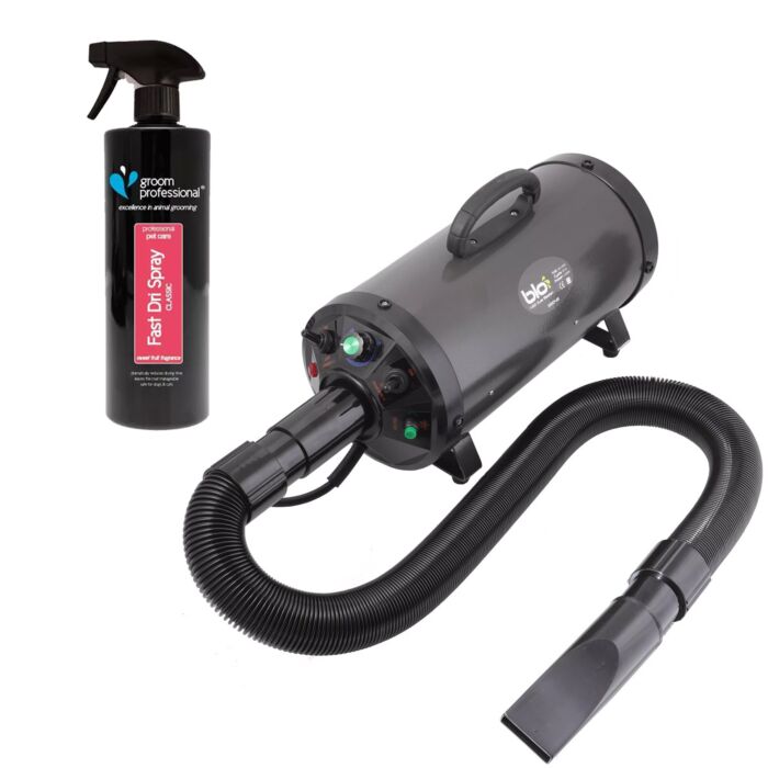 Groom Professional Fast Dri Spray for dogs and cats is a pet finishing spray that helps cut drying time in half. Unique formula, neutralizes hair natural ability to hold water, dramatically reducing drying time. It also contains special conditioners.