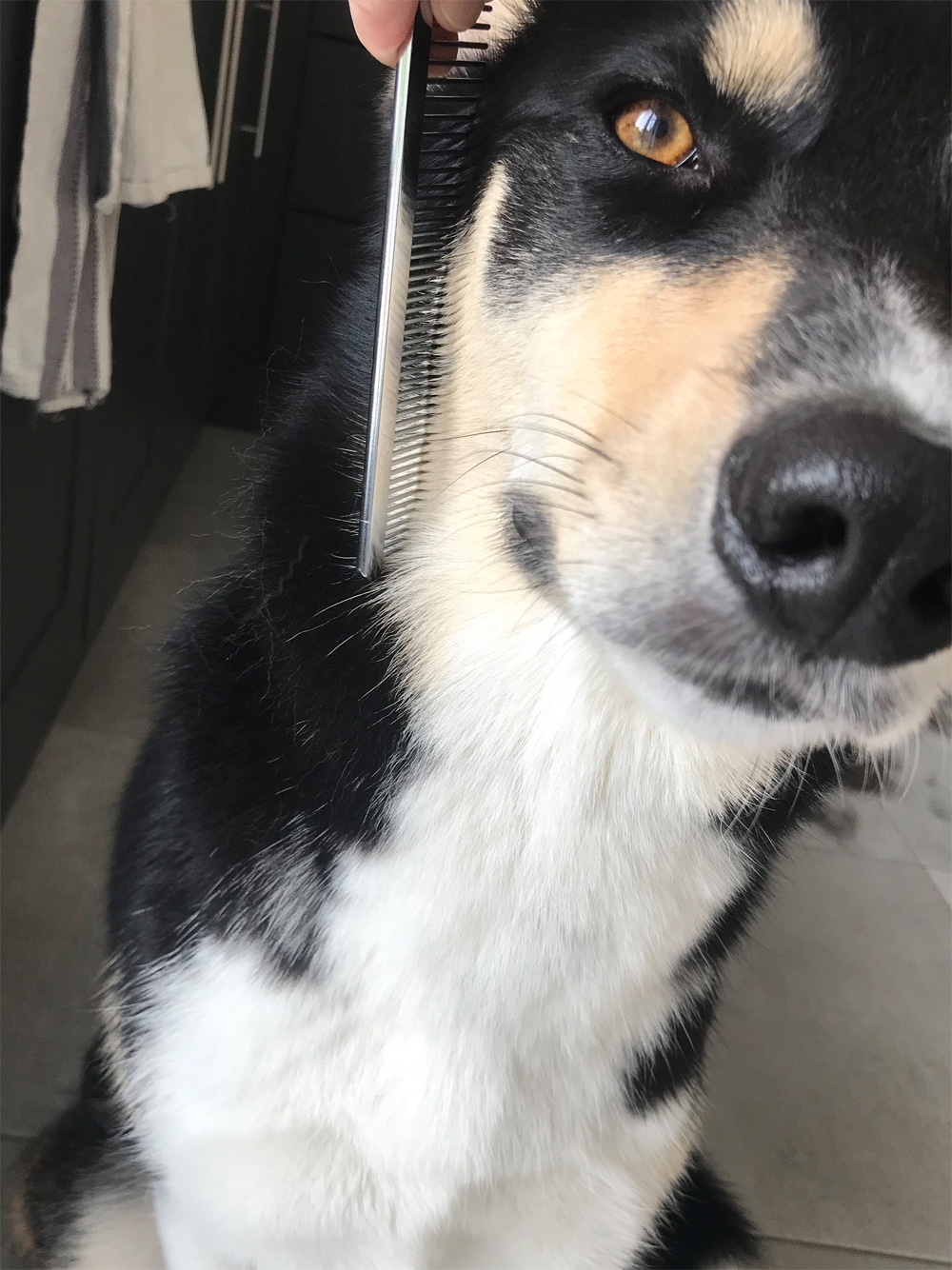 “This is such a great tool. As much as Skye loves getting brushed she’s never been too much of a fan of a brush around her paws and face… and I don’t blame her - most brushes are large in size so this comb is perfect for her paws and face as it’s quite discreet compared to the other brushes. Again, the pins are nice and long which means they get all the way through her coat, they are rounded with a smooth edge which is a nice touch. It’s a lovely comb to handle, a nice weight and again just glides through the fur and surprisingly does a great job at removing some of the undercoats too.”