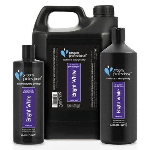 Looking for a go-to whitening shampoo for regular salon use? Bright White Shampoo by Groom Professional is a favourite for a reason. It's ideal for enhancing white and light coats without harsh bleaching agents.