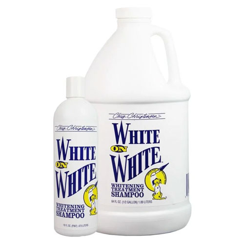 When only the brightest white will do, professional handlers turn to Chris Christensen White on White. This award-winning optical brightening shampoo is beloved in the show world for its powerful, lasting results.