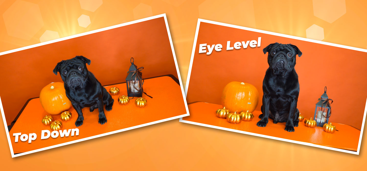 The best angle to take pets from is eye level. So if you bend your knees down to eye level, you’ll get a clearer shot. If you’re in a grooming salon and using your grooming table and if it’s electric or hydraulic, you can raise the dog up to your height to give your knees a break.