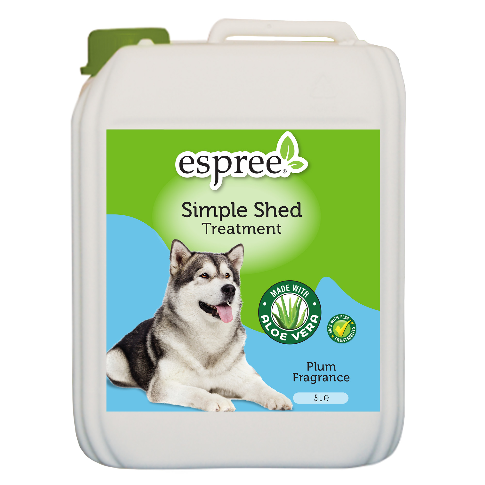 Espree's Simple Shed Treatment is formulated with Jojoba Oil, Aloe Vera and Hydrolzed Oat Protein to condition, moisturise and help release loose hair and undercoat. Its delightful Plum fragrance leaves your dog smelling fresh. For optimal results use with Espree Simple Shed Shampoo. This treatment is also safe for use with flea treatments, ensuring your pet's comfort and health.