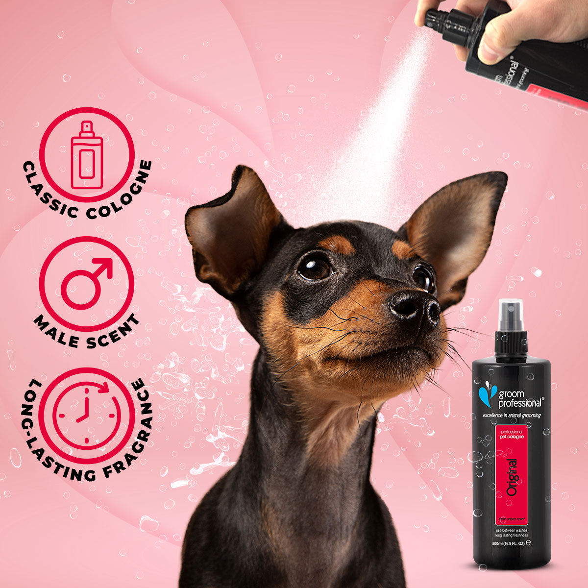Upgrade your pet’s grooming routine by pairing Original Dog Cologne with any Groom Professional Shampoo for a complete and refreshing clean.
