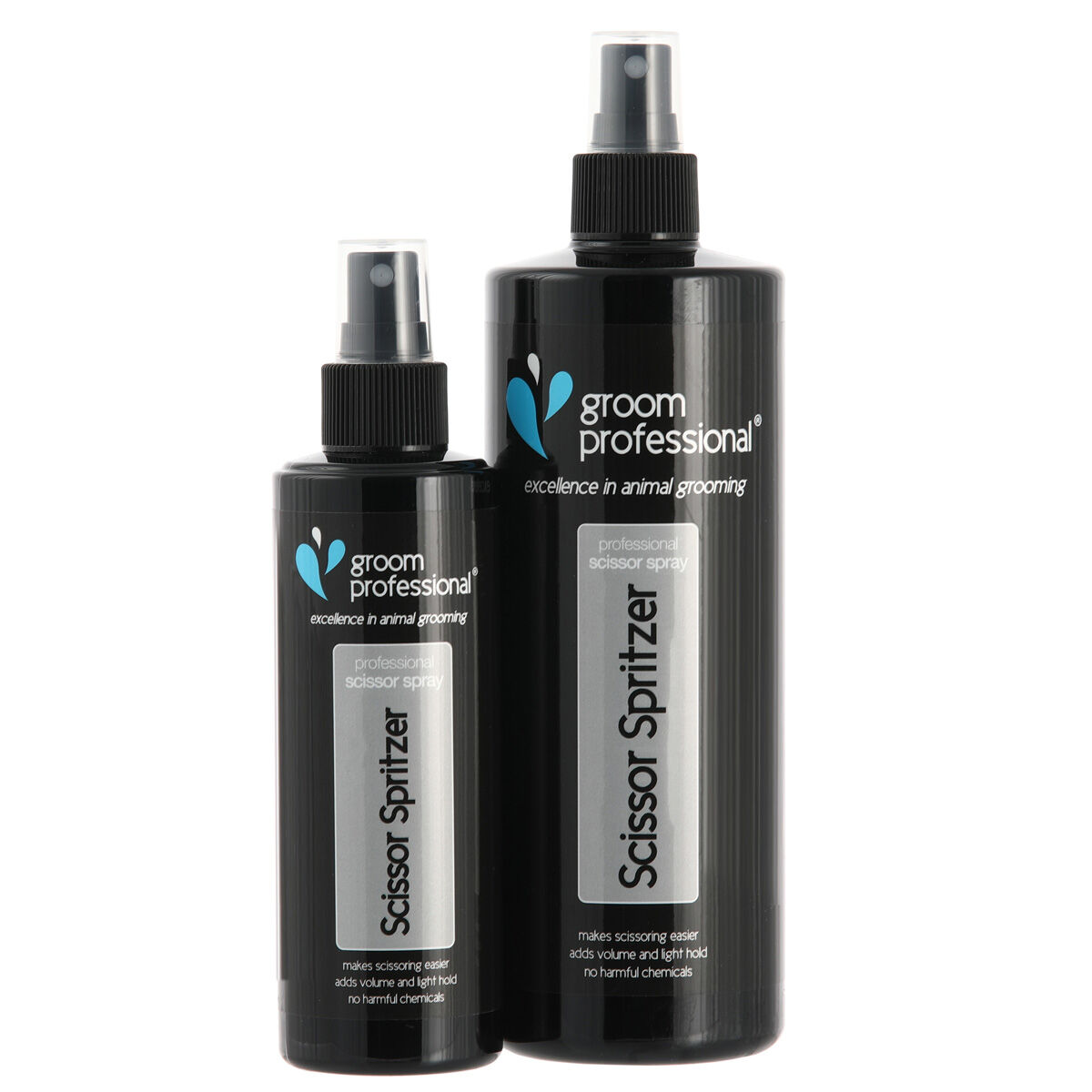 Groom Professional Scissor Spirtzer is one of our most eagerly awaited products. During trails every one of the groomers and exhibitors who received a sample, all rated the product as excellent. If you use scissors then Scissor Spritzer is a must to reduce static, leave the hair easier scissored, as well as the comb gliding easily through the coat. Scissor Spritzer holds and adds volume the coat without making it sticky or leaving any residue. Simply spray on and comb in before scissoring to leave a beautiful finish.