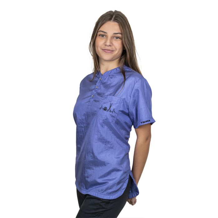 In addition, the Tikima Figari shirt is made with hair-proof material, ensuring that hair will not stick to it during grooming sessions. Featuring a short sleeve design, this shirt is perfect for warmer days. The small embroidered scissors & pawprint on the front and Tikima name on the short sleeve add a touch of personality and showcase your passion for dog grooming.
