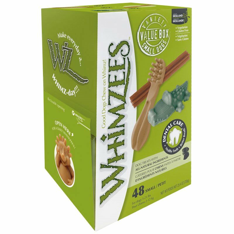Whimzees Variety packs offers excellent value for money and a selection of chews to keep your dog entertained! Each pack contains equal amounts of sticks, toothbrushes and alligators. The flap at the front opens, offering you a counter stand for your salon.
